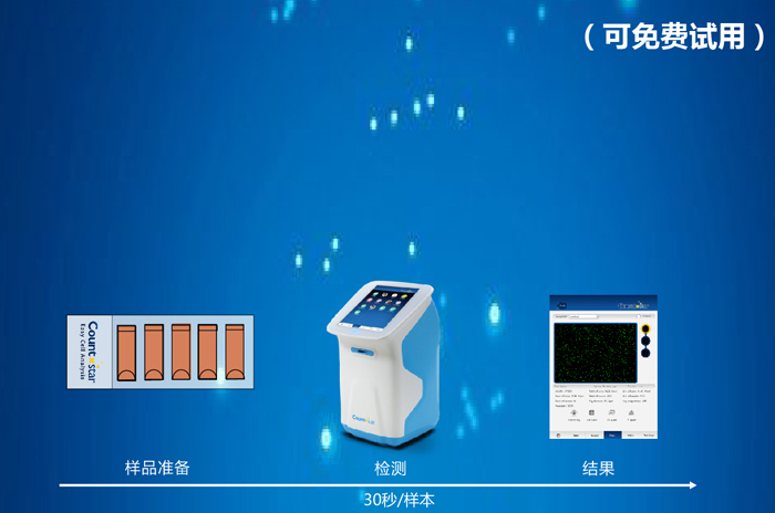 Countstar全自动荧光细胞分析仪正式推出免费试用,马上点击申请试用已试用客户的情况反馈:诺华,中科蓝华,赛莱拉等对该应用都非常愿意接受,认为比台盼蓝的方法准确。