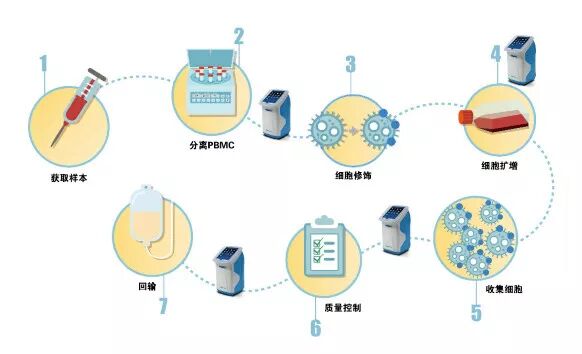 另一方面CAR-T制造工艺复杂,下图列举了CAR-T的制作流程,其中涉及到病毒转染,外源物质的引进,长时间培养等因素,这势必对质量控制提出了巨大的挑战。