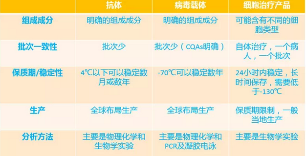其中细胞质量控制贯穿CAR-T从研发到临床的所有步骤,但CAR-T作为“活”的药物,其很多特性与传统药物有很大的差别,下表列举了与传统药物的主要差异点: