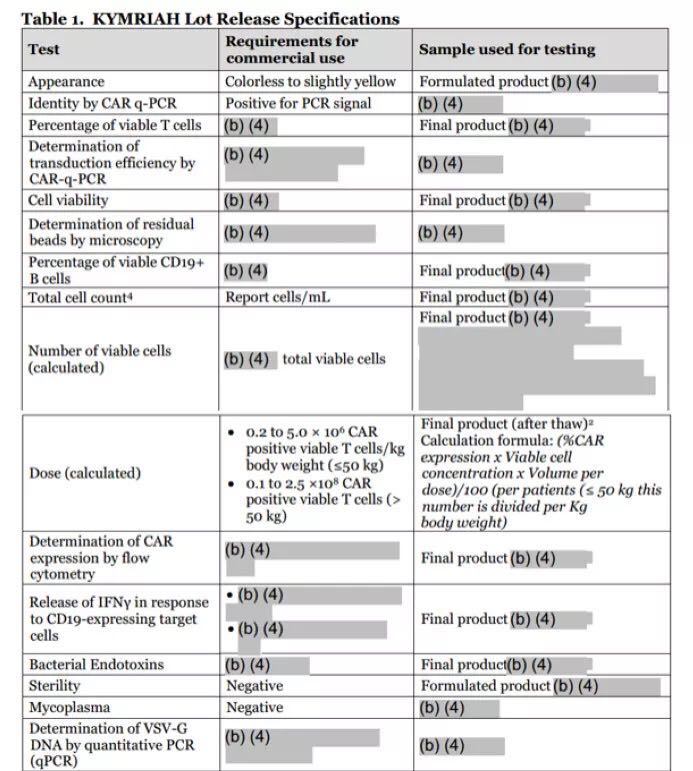 KITE的YESCARTA的质量控制也涉及到非常多的生物学实验,篇幅有限,就不一一列举了,具体指标可参考如下的链接:
