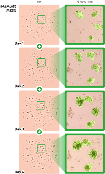 由于类器官内部缺乏循环系统,当类器官的尺寸较大时,靠近中心的细胞难以和外界进行氧气和营养成分的交换,死亡的细胞就越多。在培养的过程中,需要控制类器官的大小在合理范围之内。使用Countstar Castor S1高通量智能3D细胞分析仪可以对生长中的类器官进行拍照和分析,随时监控类器官的形态特征。