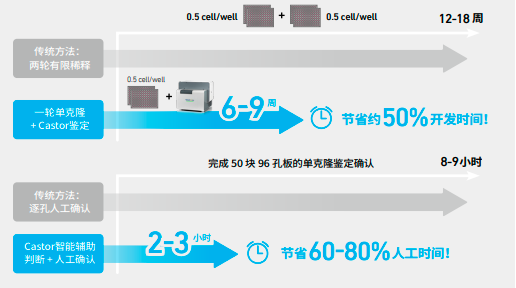 Castor基于AI深度学习算法和大数据分析,对克隆团进行精准识别,自动追溯,并辅助判定单克隆源性,帮助节省约65%的人工核验时间,加速单克隆鉴定开发进程。