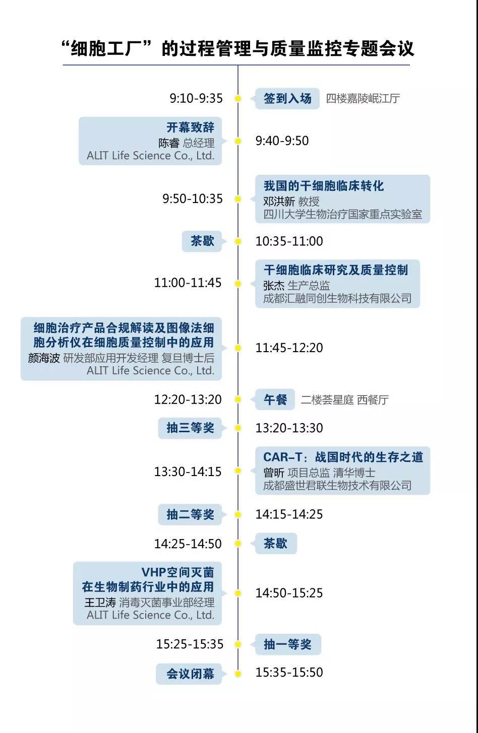 以“细胞工厂的过程管理和质量控制”为主题的专题会议已圆满落幕。作为本次会议的承办方,ALIT Life Science非常感谢业内各界人士的莅临,并荣幸能携手业内的资深专家代表,一起来探讨发展道路中的问题和解决方法。艾力特生命科学将继续关注并支持行业的发展,并为之做出自己的努力和贡献。