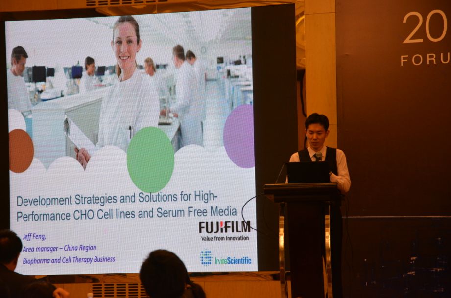 随后冯经理介绍了FUJIFILM Irvine Scientific公司新推出的高表达CHO细胞株平台系统(CHO DG44细胞,10周开发周期,10g/L表达量)和基于Rational Culture Media Design®技术开发的新一代无血清、化学成分限定的一系列细胞培养基产品,包括CHO细胞无血清克隆培养基、CHO细胞无血清基础培养基BalanCD Growth A、适合于CHO DG44、CHO-S、CHO-K1等细胞株的个性化培养基组合、适合于灌流培养的Perfusion培养基和最新一代高效浓缩的补料BalanCD CHO Feed 4等,并用数据和案例分享了FUJIFILM Irvine Scientific在缩短蛋白药物开发周期,降低开发成本等方面的方案和实践。